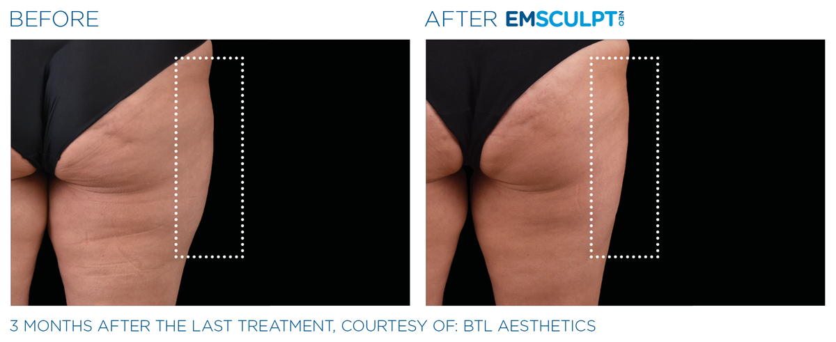EMSCULPT NEO is the only non-invasive body contouring technology that simultaneously uses Radiofrequency and HIFEM+ (high intensity electromagnetic field) to eliminate fat and build muscle. This results in more fat reduction and more muscle growth than any single gold standard product.